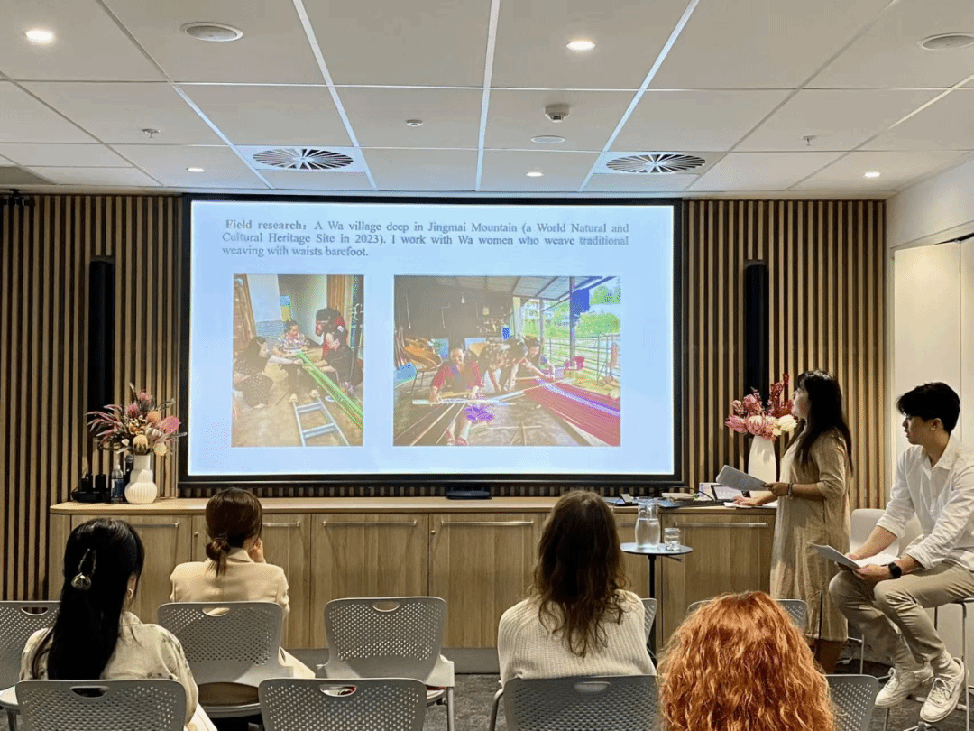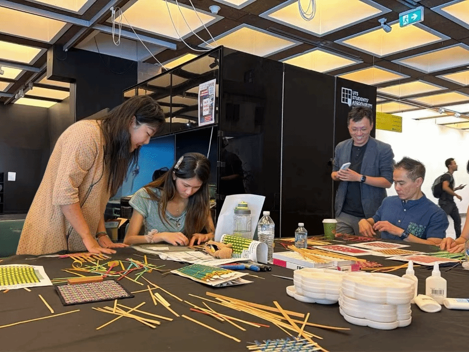 与此同时,双方还开展了多场次联合研讨、联合工作坊。上海大学上海美术学院青年教师宋天颐面向UTS师生开展了专题讲座:《全球视野下的文化共鸣——中国织绣的当代演绎》,并邀请师生参加开放式竹编艺术工作坊。