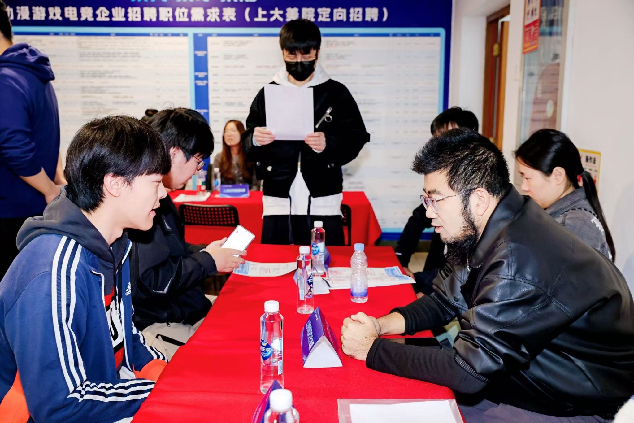 本次活动延续今年8月宝山区动漫游戏电竞产业上海美院产学研基地揭牌后的合作成果,再次聚焦产业链、创新链与人才链的深度融合。活动现场设置数字艺术展示、政策咨询、人才招聘、项目对接等多个功能专区,吸引宝山区内数十家动漫游戏电竞企业与上海美术学院百余名学生面对面交流。多家企业现场发布实习与就业岗位,超过20名中外学生当日与企业初步达成合作意向。