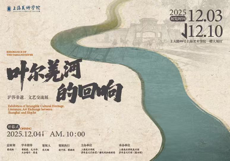 2025年12月4日上午,《叶尔羌河的回响——沪莎非遗、文艺交流展》开幕式在上海大学美术学院美术馆成功举办。此次展览由上海美术学院与莎车县文化体育广播电视和旅游局联合主办,恰逢新疆维吾尔自治区成立70周年与沪喀合作15周年的双重节点,成为沪莎两地文化对话与非遗传承的重要里程碑。本次展览既是沪莎深厚情谊的见证,也是我院践行“文化润疆”、服务国家战略的又一重要成果。