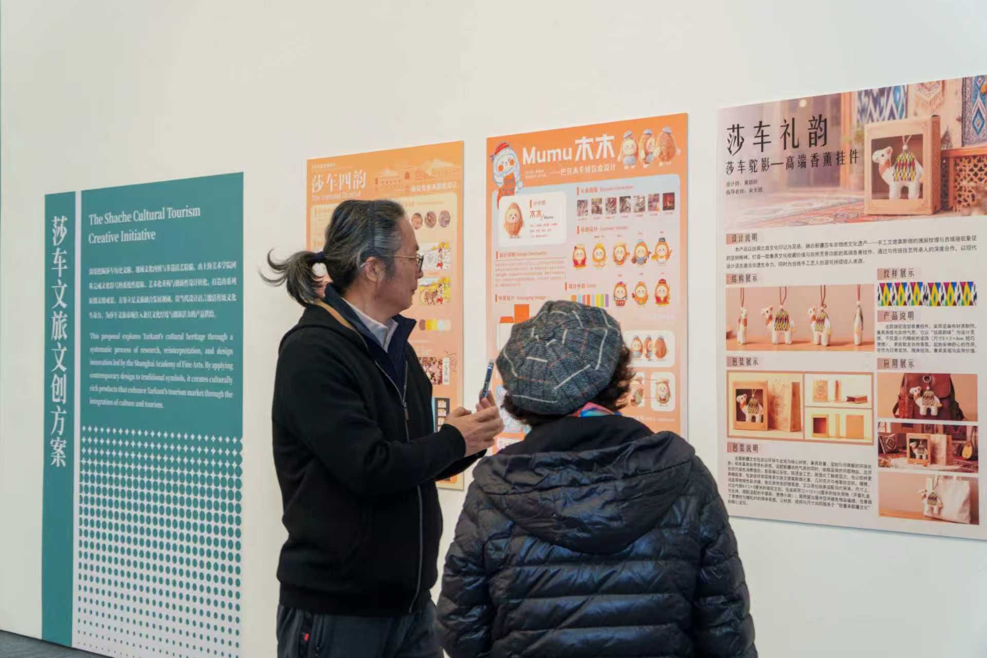 本次展览策展人是设计系青年教师宋天颐,展览以“叶河艺脉·匠心传承”“沪莎共创·非遗活化”“天籁回响·律动千年”数字未来·云端传承”四大板块为核心,既呈现了新疆莎车当地艺术家的作品、传统非遗手工艺精品,也展现了莎车与上海美术学院师生产学研的融合成果。本展览已转为数字云展厅,在线上持续开放。