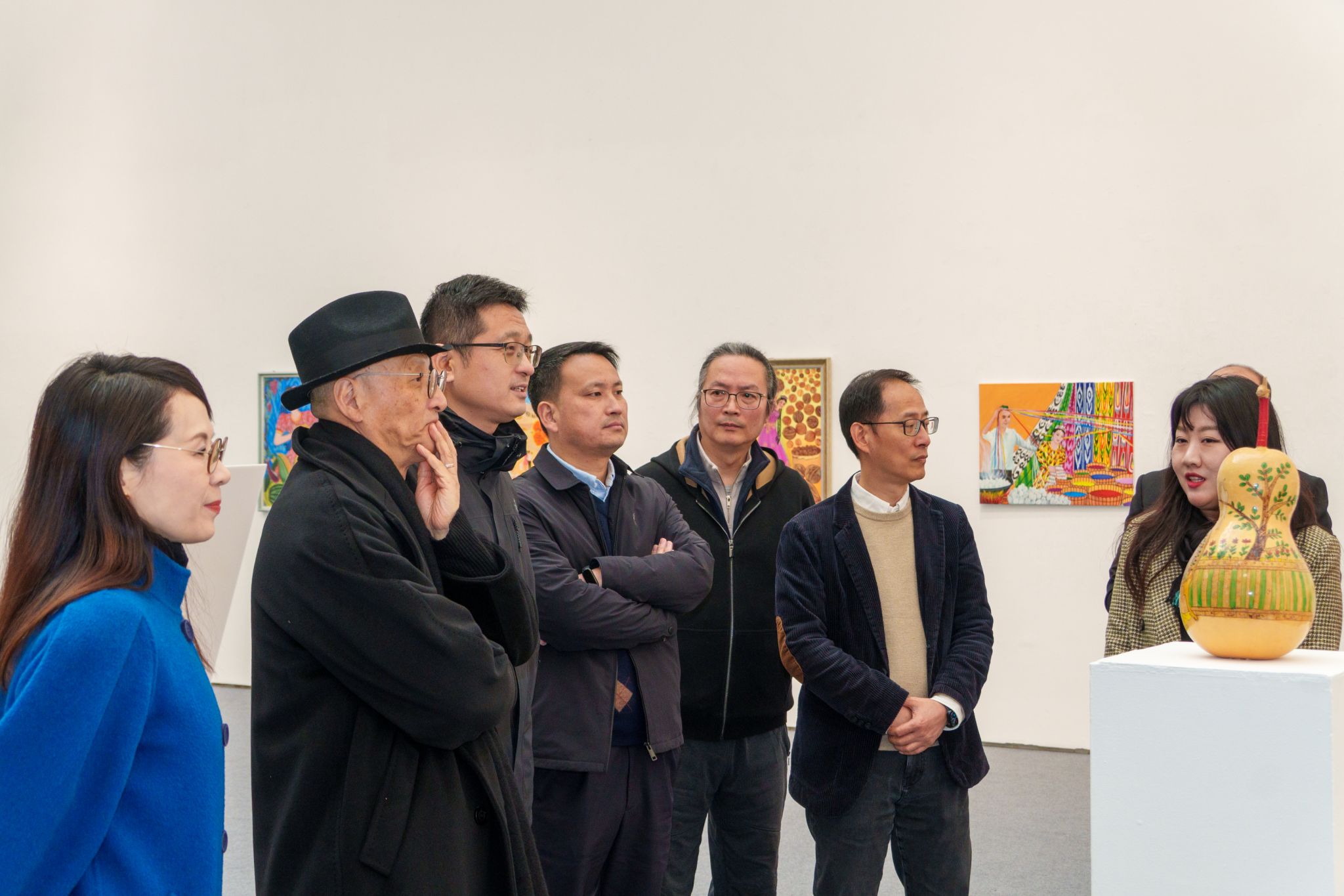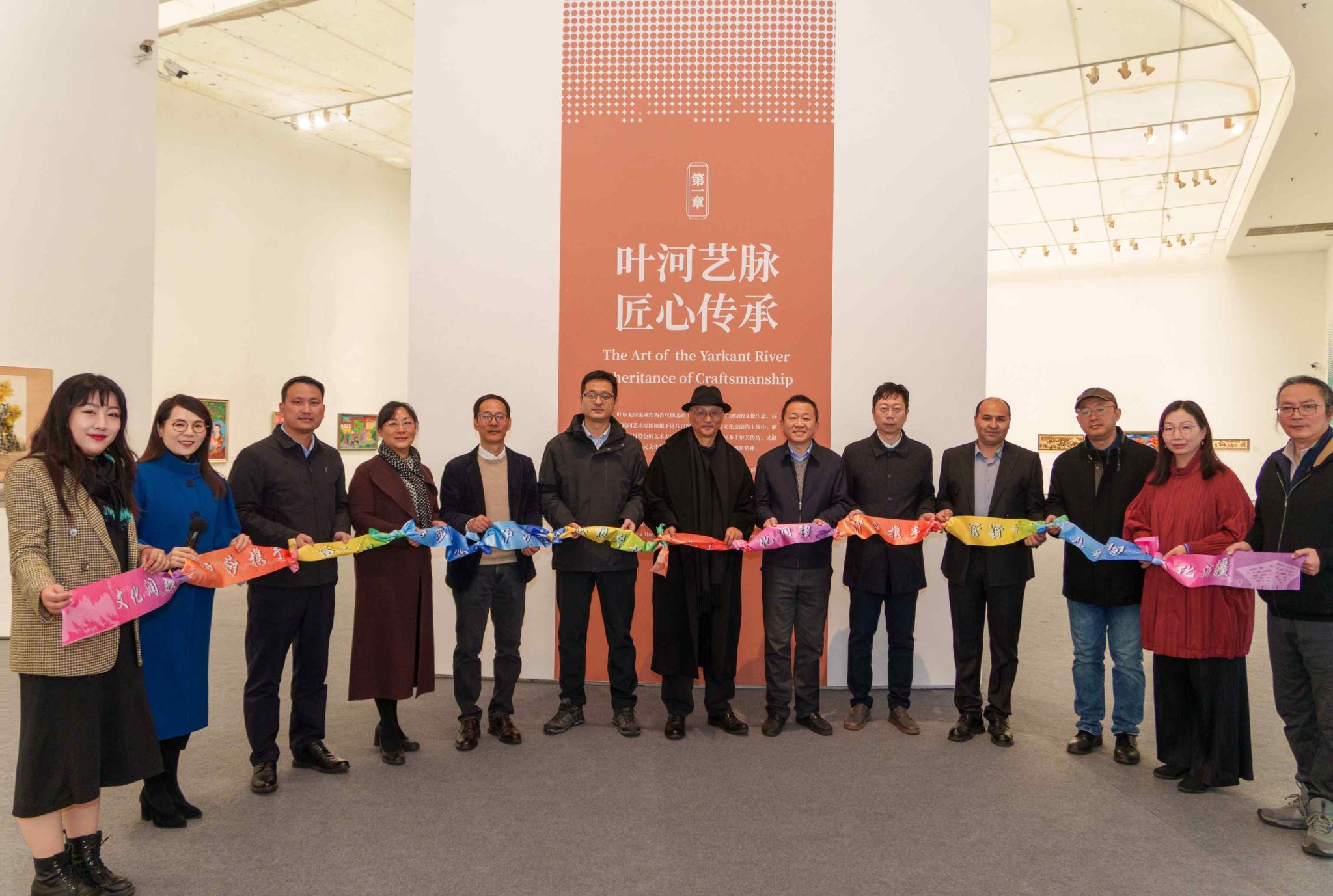 开幕式于上午10时正式开始,上海美术学院副院长章莉莉担任主持。莎车县委常委、副县长、莎车分指副指挥长王作懋;上海援疆指挥部处长、喀什地区商务局副局长杨震华;莎车县委宣传部副部长、县文体广旅局副局长杨通长;莎车县文化馆阿布杜依孜则.艾尔肯;上海金山农民画院研究员张斌;上海大学党委常委、统战部部长、教师工作部部长曹为民;上海大学教务部副部长、实验实践处处长杜晓庆;上海大学上海美术学院院长曾成钢;副院长章莉莉、毛冬华、程雪松;美院各部门负责人、各系主任、学科带头人、师生代表参加了开幕式。曹为民部长,曾成钢院长,王作懋常委先后进行致辞,共同强调文化交融对促进民族团结、推动非遗活化的深远意义。随后,与会嘉宾共同为展览系上象征“文化润疆”“沪莎共创”的彩带,宣告展览正式启动。
