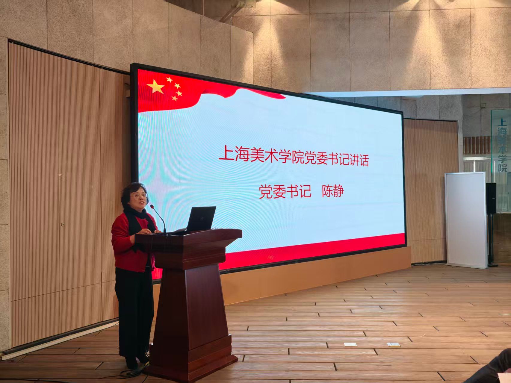 再次,党委书记陈静作总结讲话,她表示,2025年学院各项成就的取得,离不开全院师生的凝心聚力与不懈奋斗,从课程思政的亮眼成果到科研创作的累累硕果,从人才队伍的蓬勃发展到国际影响力的持续提升,每一份成绩都凝聚着大家的智慧与汗水。她鼓励全体师生,2026 年作为 “十五五” 开局之年,要以更高站位勇担文化使命,在人才培养、学科建设等方面持续发力,在文化强国建设中展现上美担当。