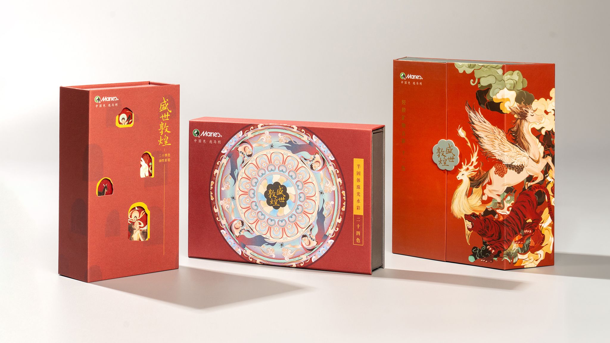 “盛世敦煌”系列以“探索敦煌故事”为核心理念,涵盖三款产品,分别是轻胶矿物古彩12色、半固体珠光水彩24色、油性彩铅24色,每一件都承载着对敦煌艺术的深情致敬与现代设计的精妙转化。该系列凭借对敦煌文化的深度理解与设计语言的精准表达,赢得了由129位国际独立设计专家组成的评审团一致肯定。在全球设计精英的激烈角逐中,作品以独特的文化叙事与设计创新,成功摘得这一极具分量的国际荣誉。