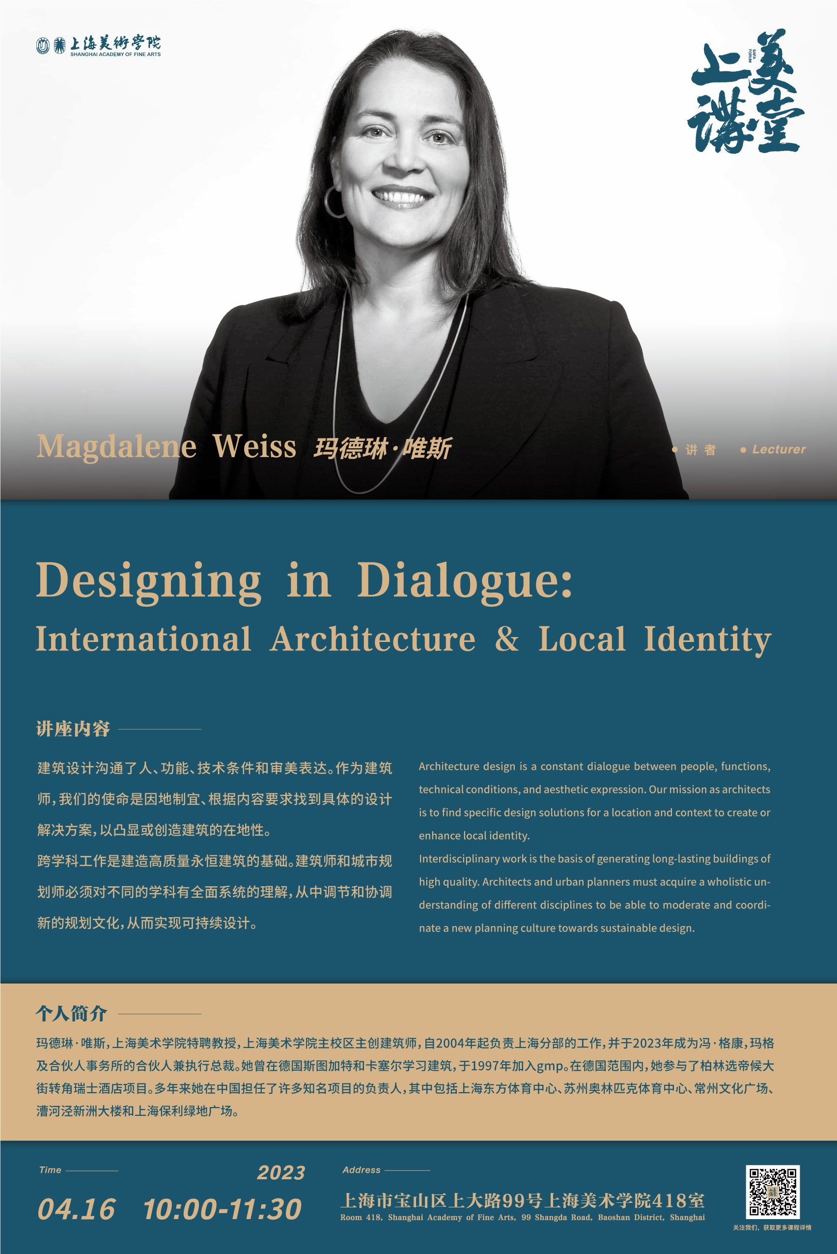 玛德琳·唯斯,上海美术学院特聘教授,上海美术学院主校区主创建筑师,自2004年起负责上海分部的工作,并于2023年成为冯·格康,玛格及合伙人事务所的合伙人兼执行总裁。她曾在德国斯图加特和卡塞尔学习建筑,于1997年加入gmp。在德国范围内,她参与了柏林选帝候大街转角瑞士酒店项目。多年来她在中国担任了许多知名项目的负责人,其中包括上海东方体育中心、苏州奥林匹克体育中心、常州文化广场、漕河泾新洲大楼和上海保利绿地广场。