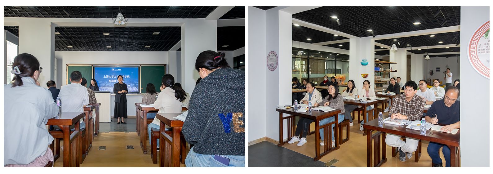 为深化大中小学美育一体化建设,推动高校优质美育资源向基础教育辐射,10月24日下午,上海大学上海美术学院副院长毛冬华、国画系主任贺戈箫、教学管理中心王若诗一行,赴上海市嘉定区安亭高级中学参加美育培育基地活动。本次活动以“美育浸润与科创实践”为主题,通过交流研讨与动手实践,为中学师生带来了一场艺术与思维的碰撞。