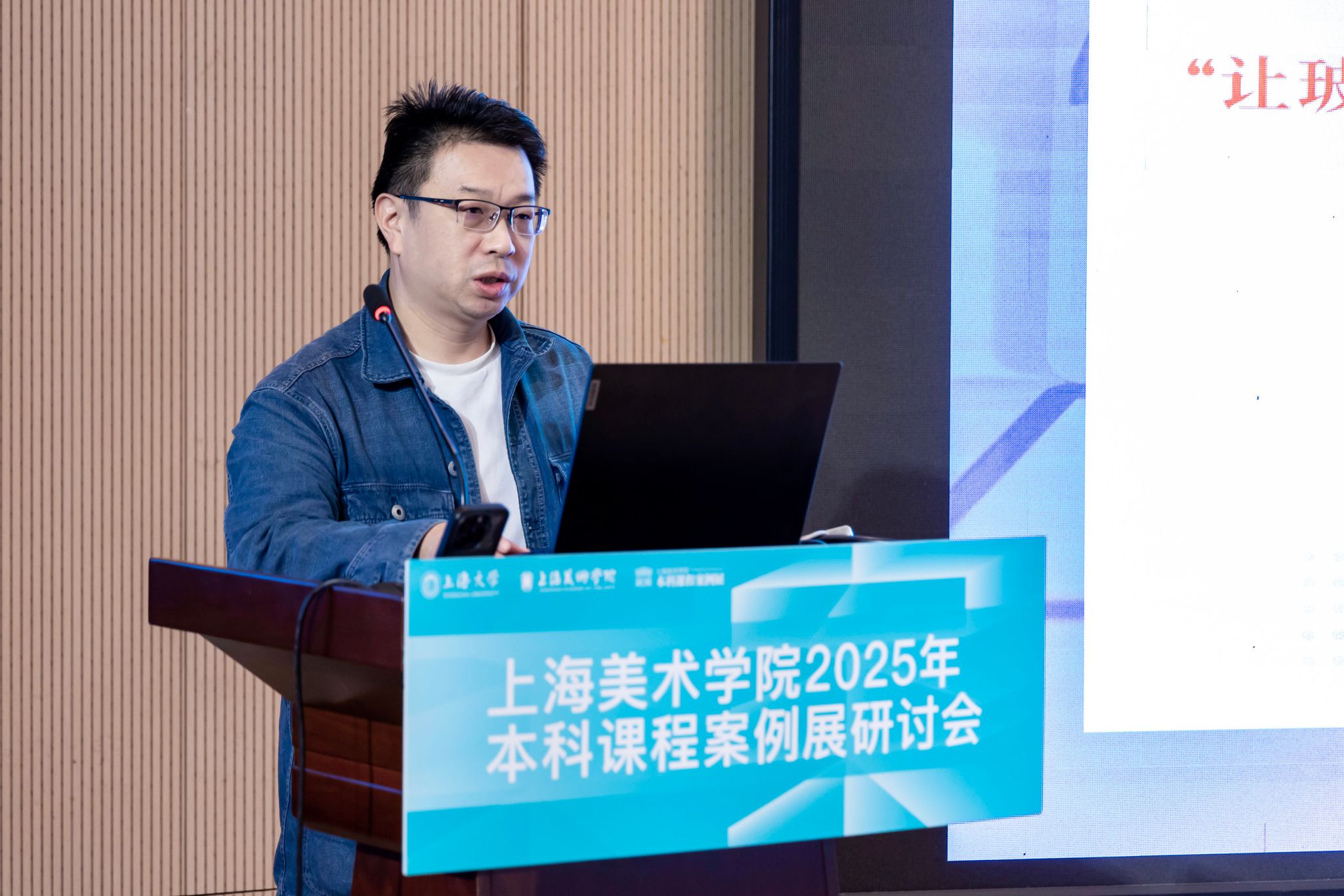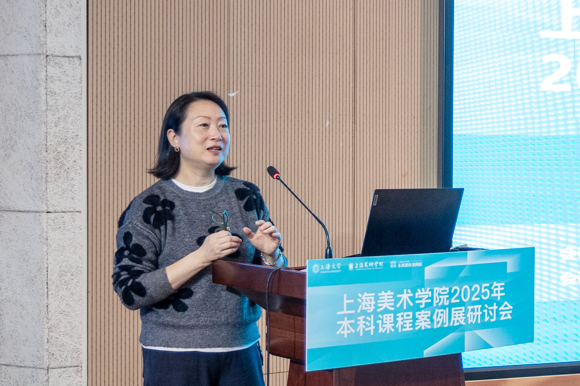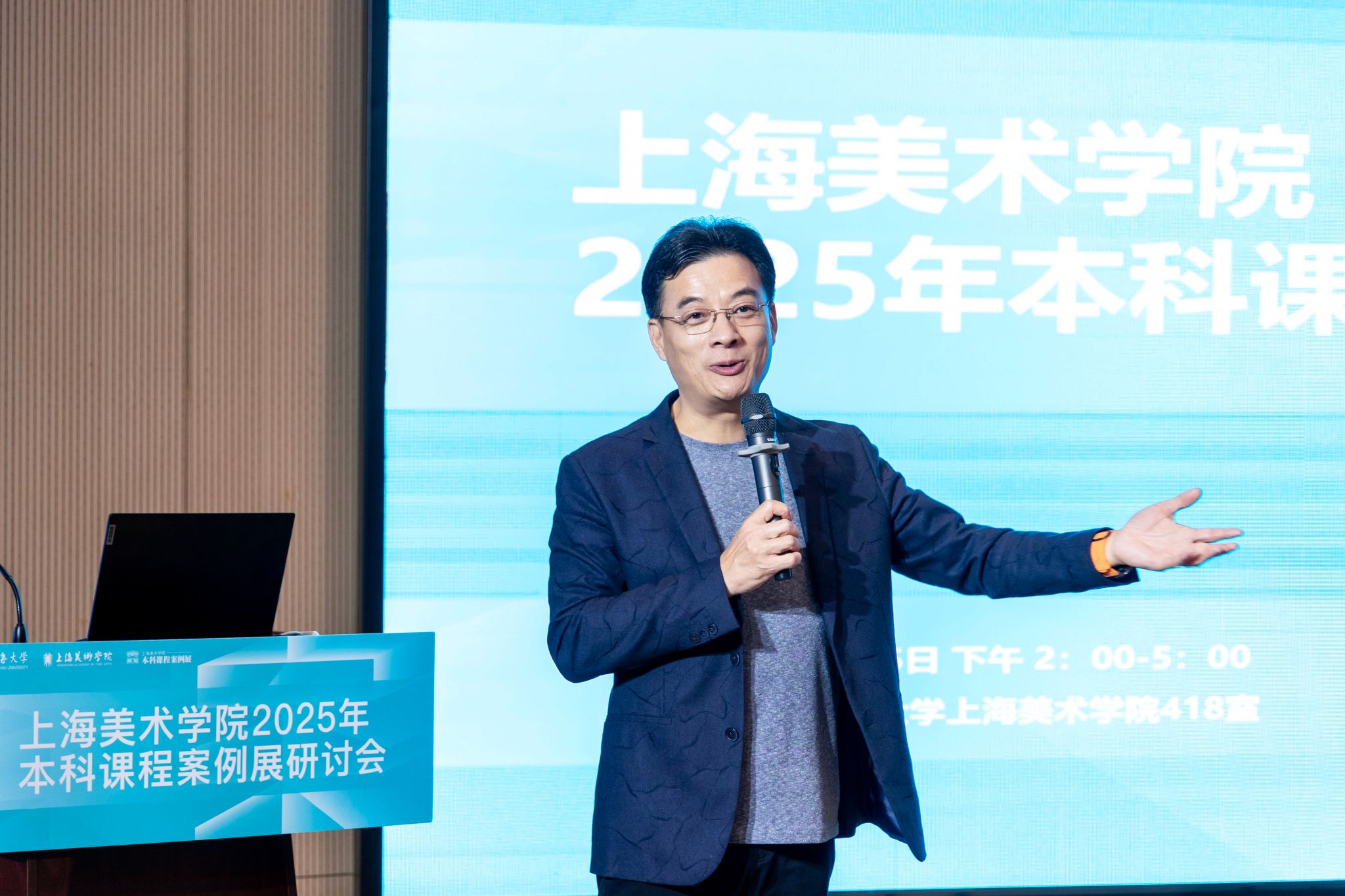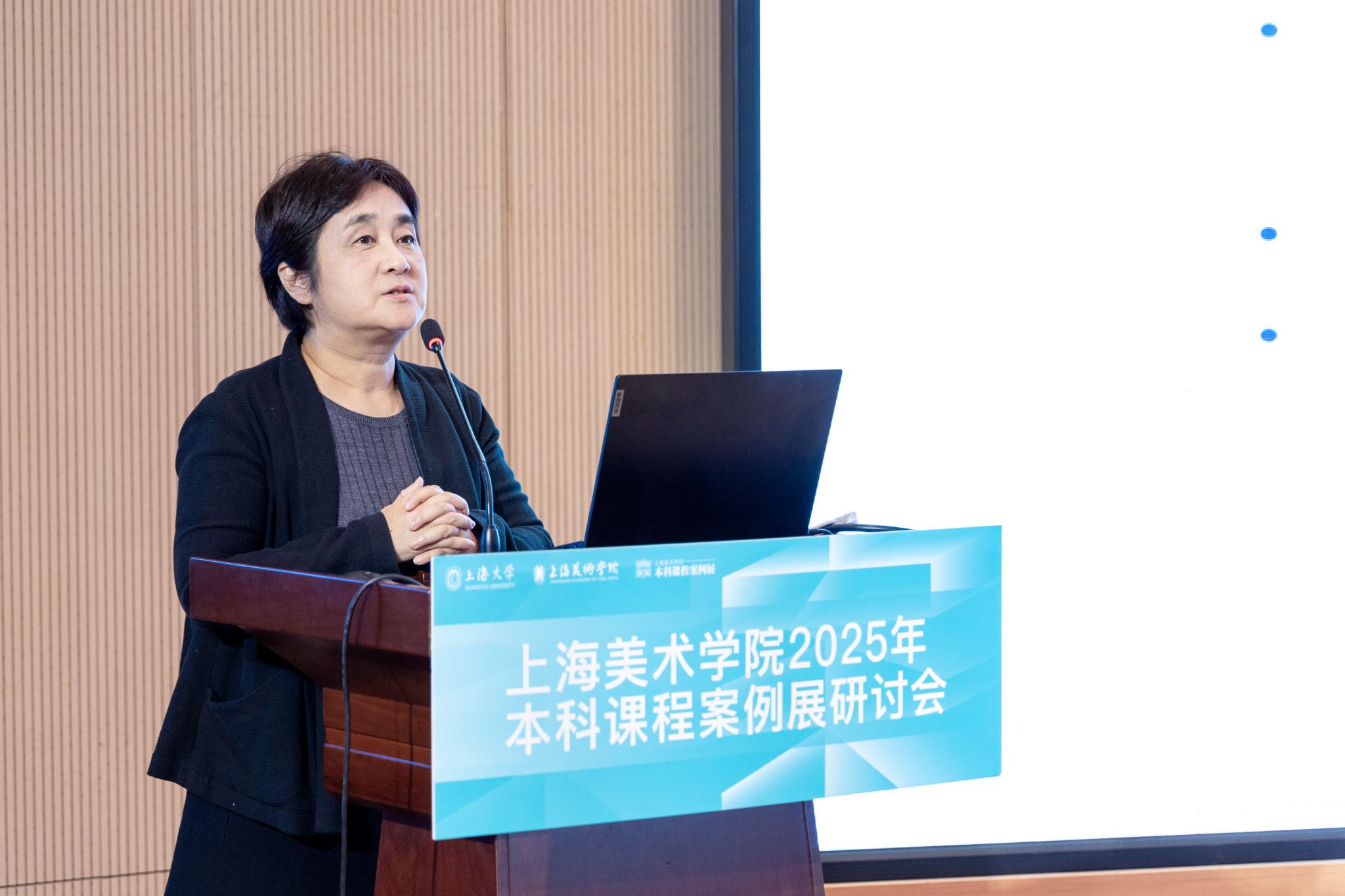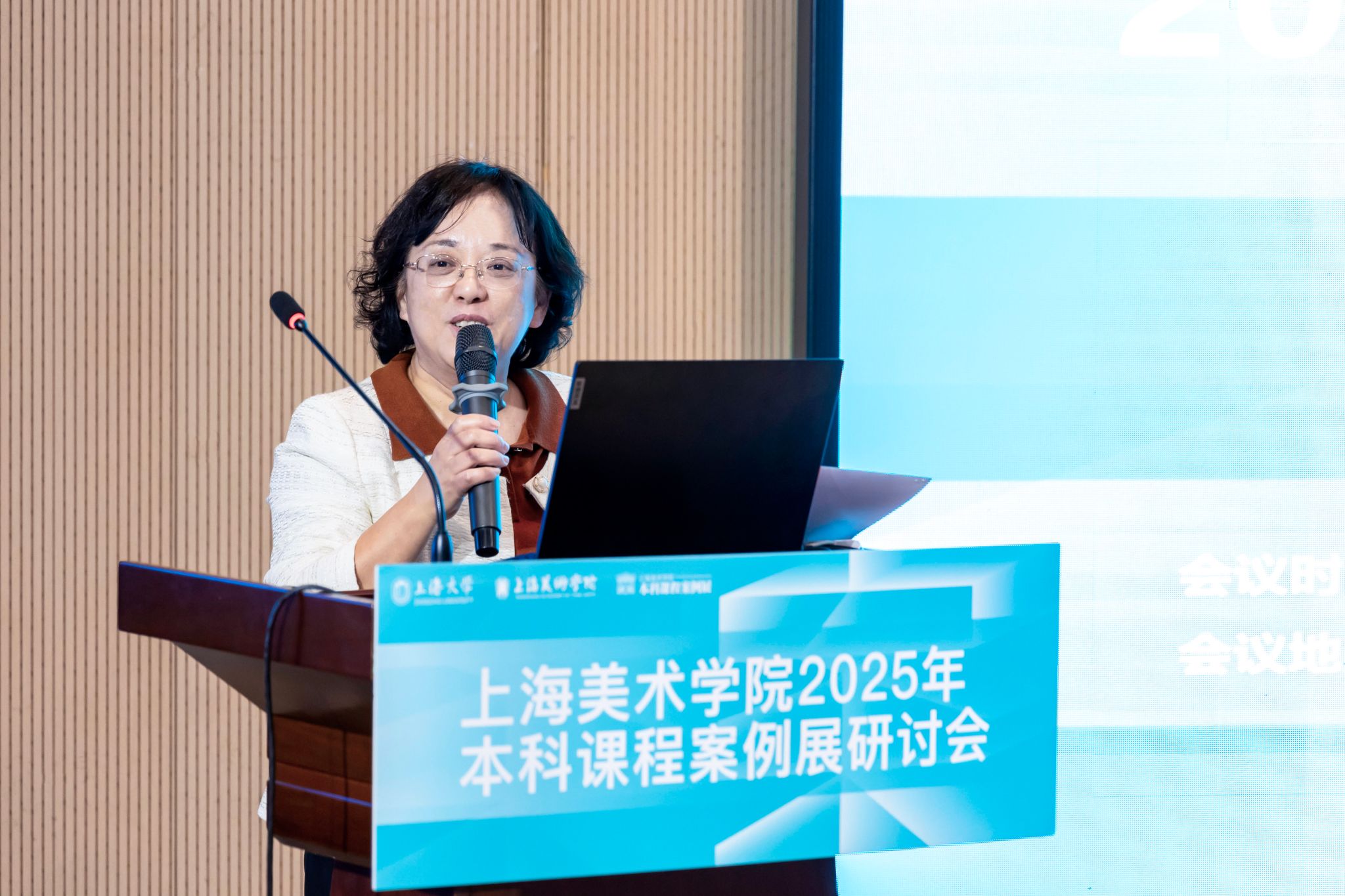 2025 年 11 月 5 日下午,由上海大学上海美术学院主办的“2025 年本科课程案例展研讨会”于上海大学宝山校区成功举办。上海大学党委常委、副校长王从春、教务部副部长顾晓英,中央美术学院教务处副处长周岚、历史与理论中心负责人何可人,中国美术学院媒介展演系主任牟森、上海科技大学创新与艺术学院助理院长杨继栋及上海师范大学附属宝山罗店中学校长严卫东、上海大学附属中学等特邀嘉宾,学院党委书记陈静、院长曾成钢、执行院长金江波及班子成员出席了此次研讨会。