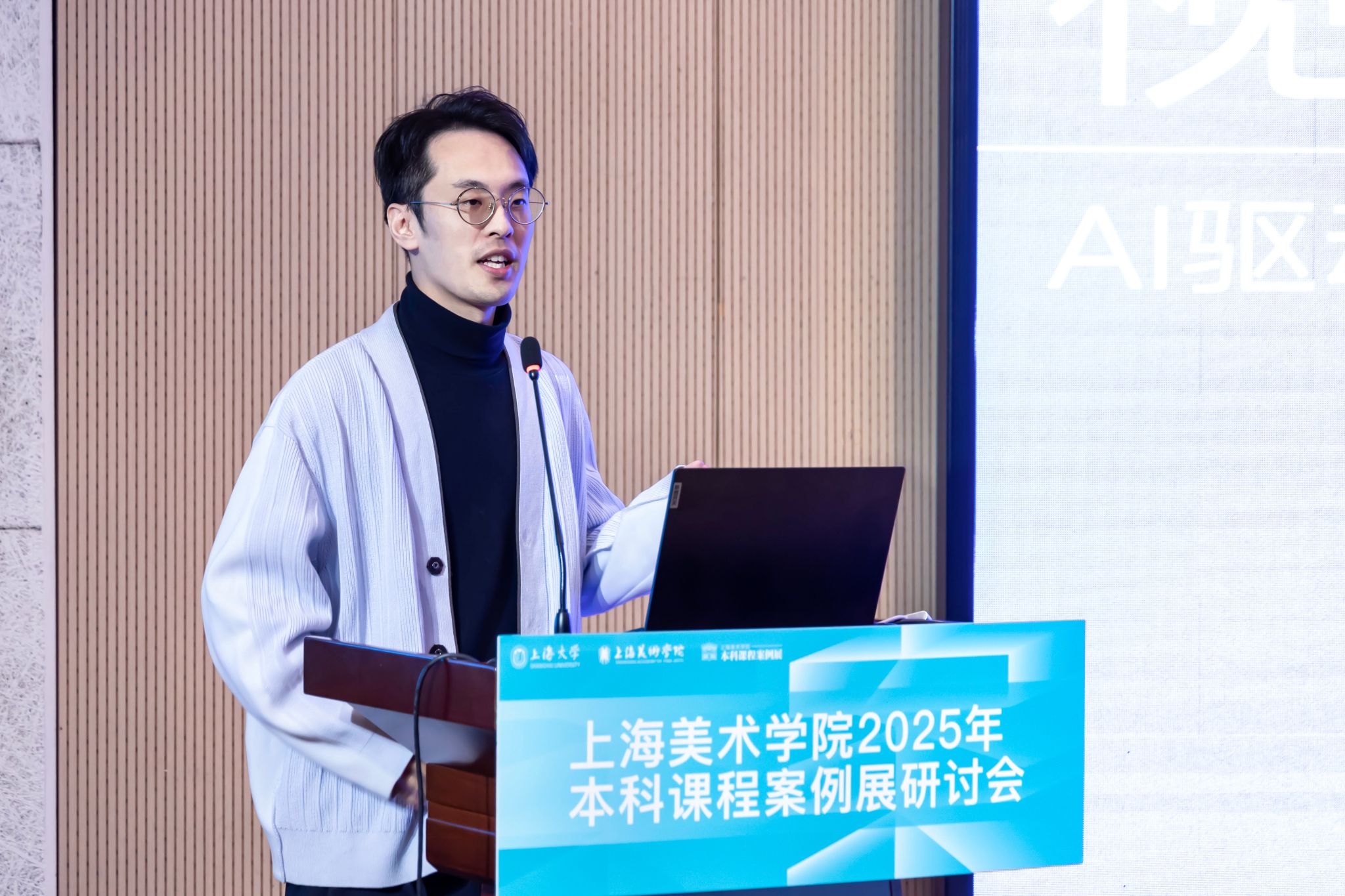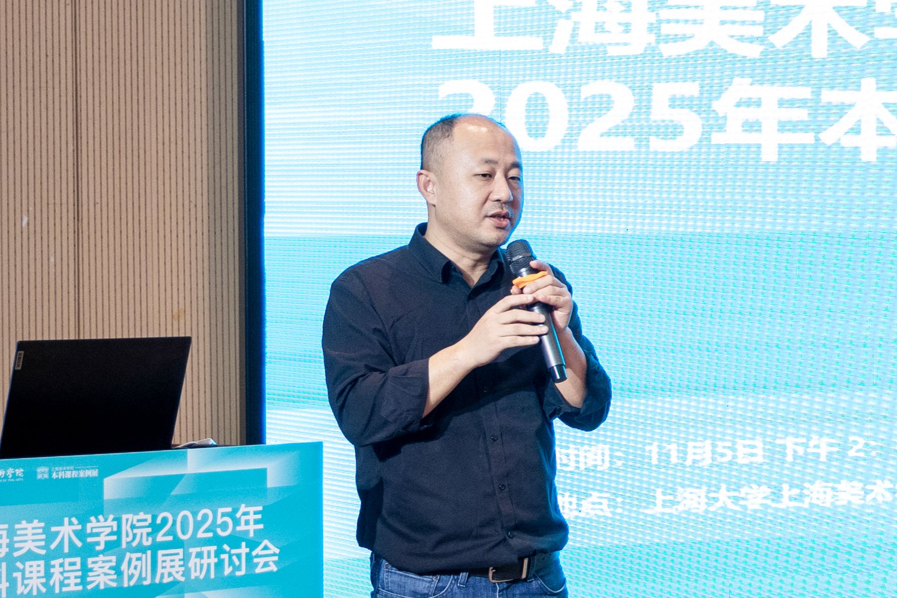 活动伊始,上海美术学院院长曾成钢教授在研讨会开幕致辞中提到本届案例展规模空前,纳入院系特色、虚拟仿真及特邀校外课程,彰显开放协同教学理念。面对AI技术对教育的重塑,学院正推进课程数字化与内涵升级,融合智能技术并践行“艺术+思政 ”育人逻辑。未来美院将持续以学生成长为中心,深化跨学科融合,完善“ 以展促建 ”机制,强化课程团队建设,助力艺术人才培养与文化创新。