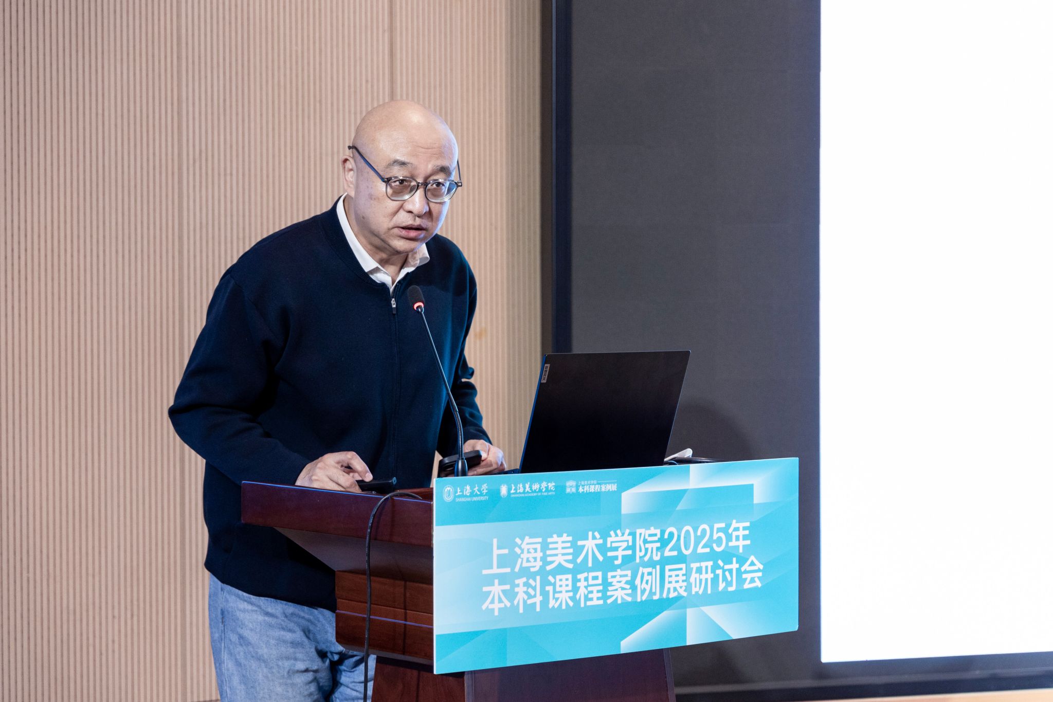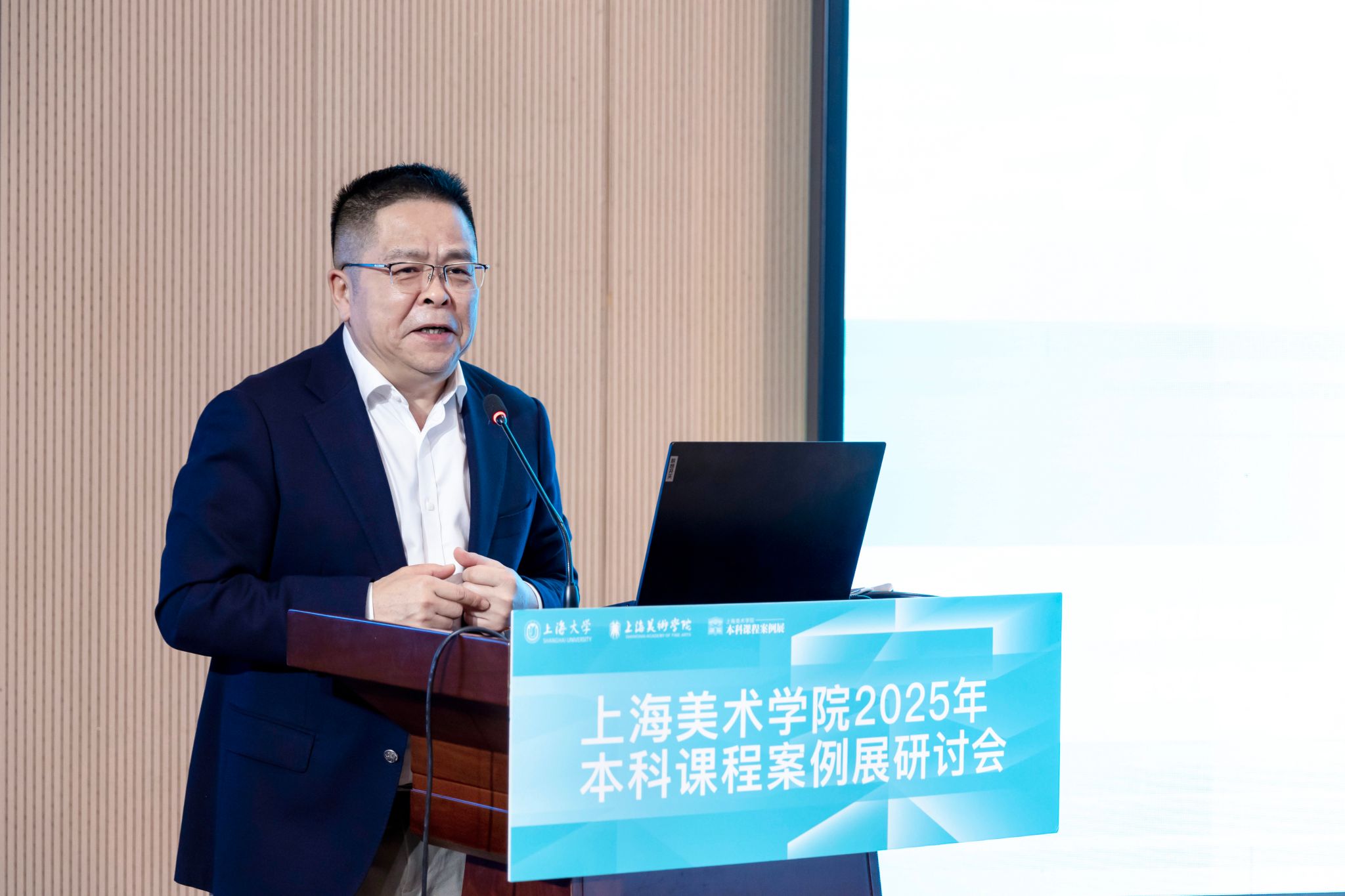 上海美术学院执行院长金江波在发言中,向与会专家及兄弟院校同仁致以诚挚感谢。他表示,连续举办十二届的本科课程案例展,已成展现美院教学体系的名片,而课程建设更是本科教育工作的根基所在。他欣慰于青年教师积极投身教学实践,为学院发展注入鲜活活力与蓬勃希望,同时肯定了教学团队在本科教学中的卓越贡献和探索精神。他期待与全国艺术教育同仁持续携手,凝心聚力共绘中国美术教育未来新图景。